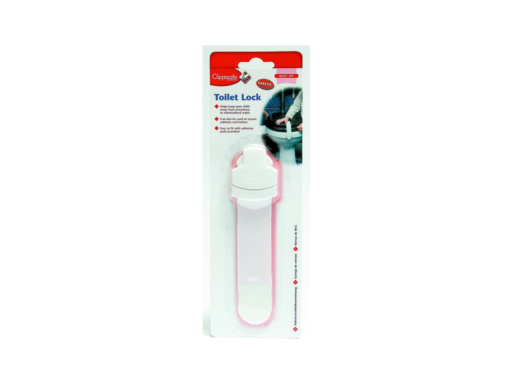 Záchodový zámek Clippasafe je snadno použitelný a drží záchodový poklop bezpečně zamčený, dokud jej neuvolní dospělý.