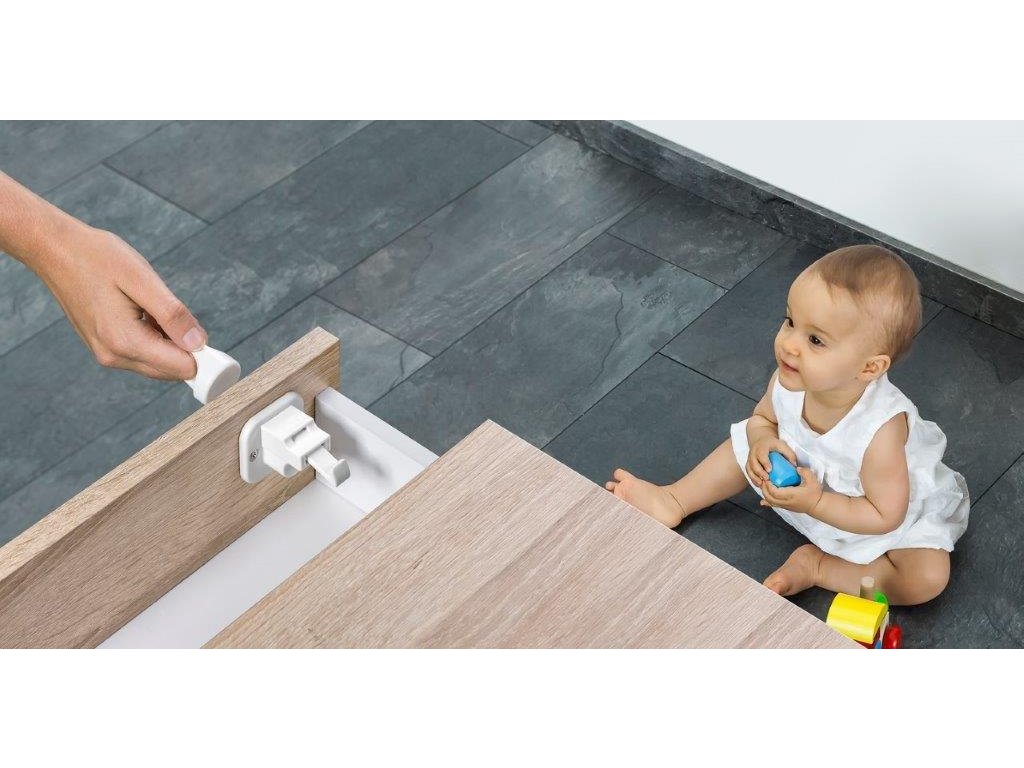 Spolehlivě uzamkne skříňky a zásuvky a chrání tak děti před případným nebezpečím.
