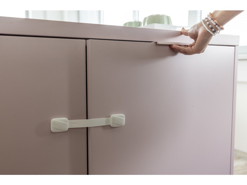 Zvědavé děti často otevírají skříňky a zásuvky, což může být velmi nebezpečné. Nastavitelný univerzální zámek skříněk je navržen tak, aby zabránil dětem v přístupu k nebezpečným předmětům uvnitř skříněk, čímž poskytuje rodičům klid a jistotu. Je vhodný na všechny rovné povrchy a jeho délku lze upravit podle potřeby.