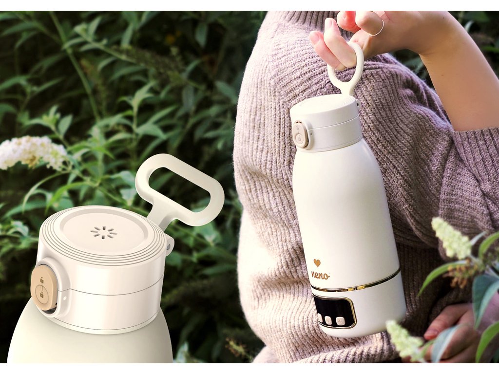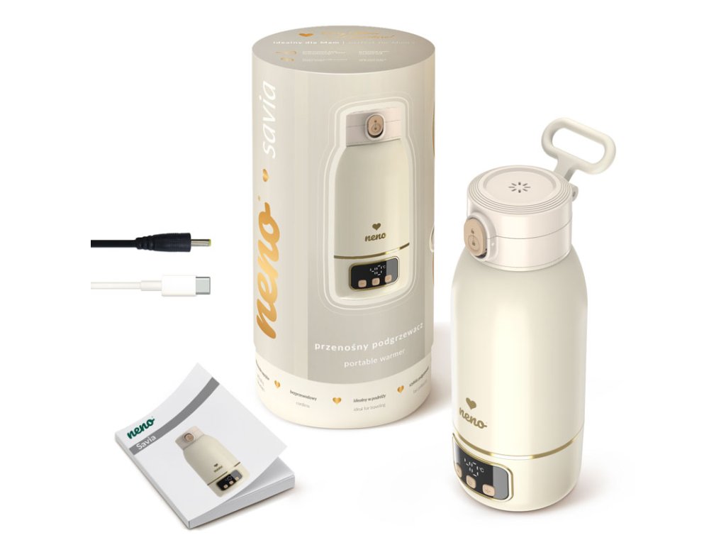 Neno Savia je bezdrátový ohřívač, který je ideální pro cestování, výlety i každodenní použití. Rychle ohřívá mléko nebo vodu, udržuje jejich teplotu a na jedno nabití umožňuje ohřát tekutiny až osmkrát. Díky lehkému a kompaktnímu designu, pohodlné rukojeti a nepropouštějícímu uzávěru si jej můžete vzít kamkoli.