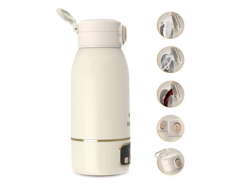 - Těsnící uzávěr: Cestování s dítětem už nebude problém. Ohřívač je vybaven nepropouštějícím uzávěrem a zámkem na tlačítko, který zajistí, že se nic nevylije a zařízení se nezapne samovolně.