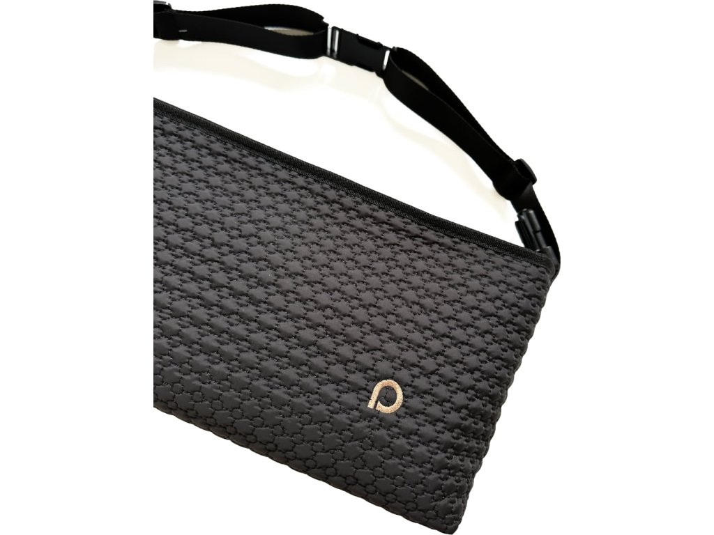 Uvnitř je kapsička na drobnosti a tři očka z gumy,kam snadno a bezpečně můžete postavit lahvičku s pitím.