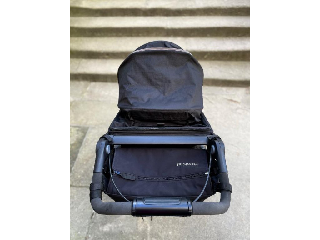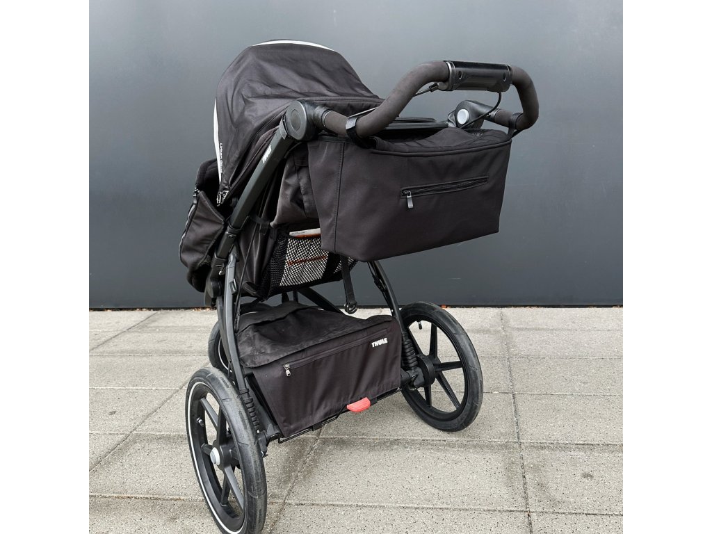 Objemný organizér vytvořený na kočárek Thule nebo jemu podobný. Jeho specifickému madlu jsme navrhli organizér, který na míru sedí a kopíruje tvar kočárku. Proto i po sklopení sedačky do polohy v leže, organizér nepřekáží, protože má zkosený tvar.