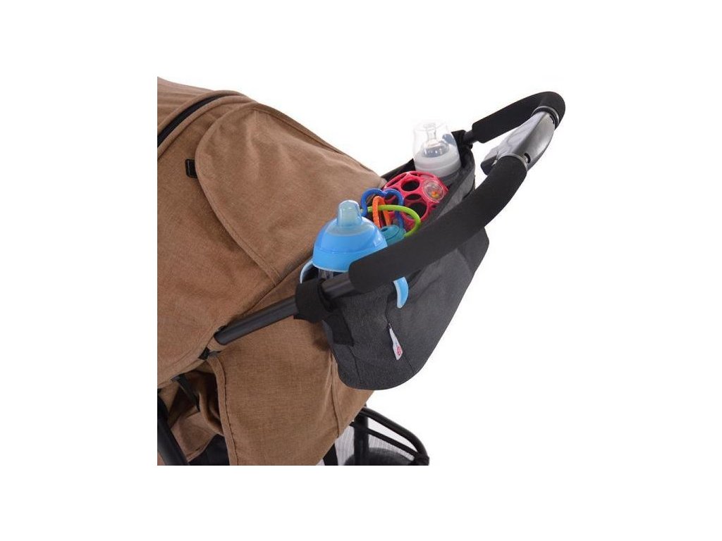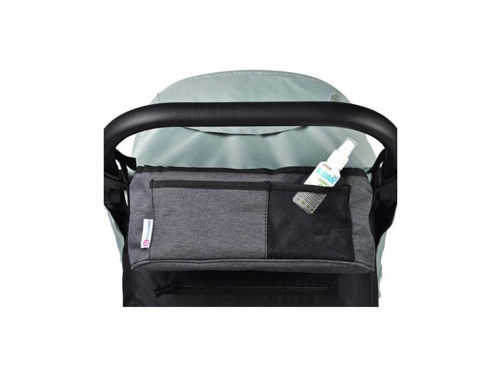 Praktický organizér s nastavitelnými popruhy na přichycení k rukojeti kočárku je vhodný pro většinu kočárků. Při procházce budete mít všechny důležité předměty po ruce.