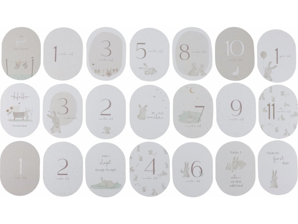 Sada originálních 21 karet s krásnými ilustracemi vám pomůže zachytit vzácné vzpomínky na jednotlivé milníky v životě vašeho miminka od narození, od prvního úsměvu až po první krůčky. Každý okamžik je vzácný, každý milník je jedinečný a při využití těchto karet na fotografiích vždy poznáte, který z těchto oakmžiků fotografie zachytila.