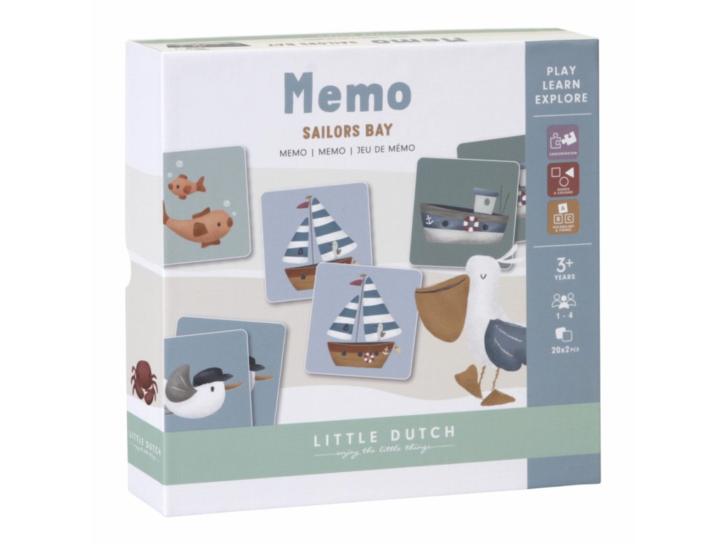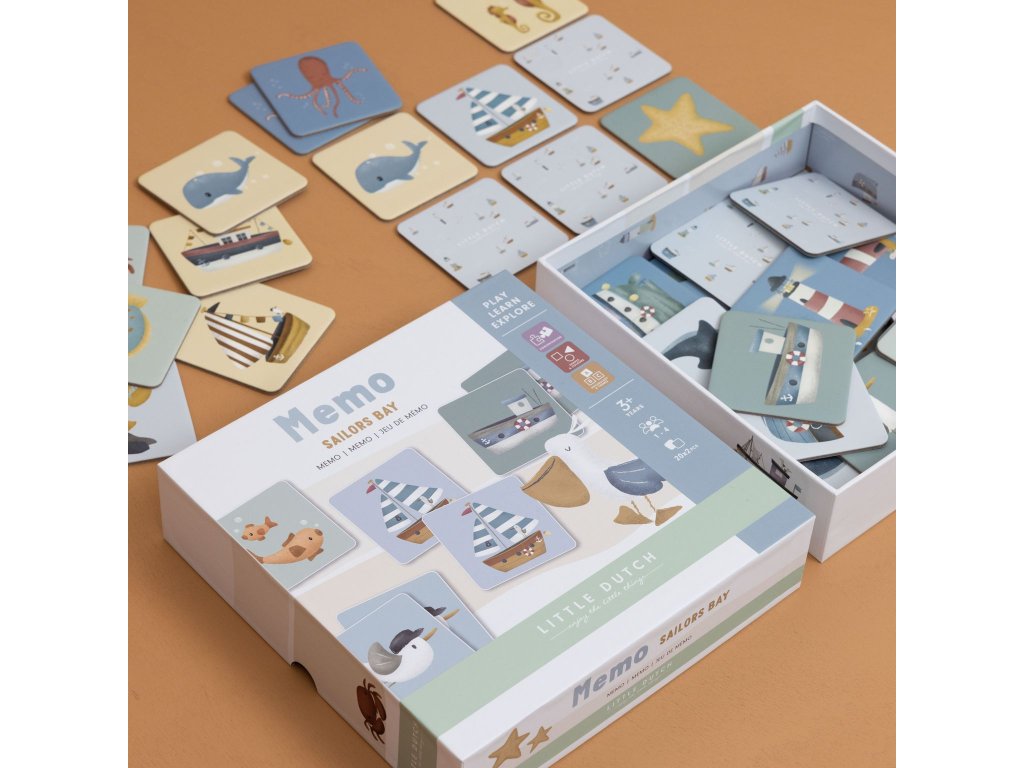 Tato hra Little Dutch memo je stejně zábavná jako vzdělávací. Každá karta je zdobena ilustrací inspirovanou přístavem. Zamíchejte karty a položte je na stůl lícem dolů. Nasbírejte co nejvíce stejných obrázků a vyhrajete! Tuto hru můžete hrát i sami. Pexeso poskytuje nekonečnou zábavu a učí děti čekat, až na ně přijde řada. Karetní hra také trénuje důležité dovednosti, jako je koncentrace a soustředění. Hra je vhodná pro děti od 36 měsíců.