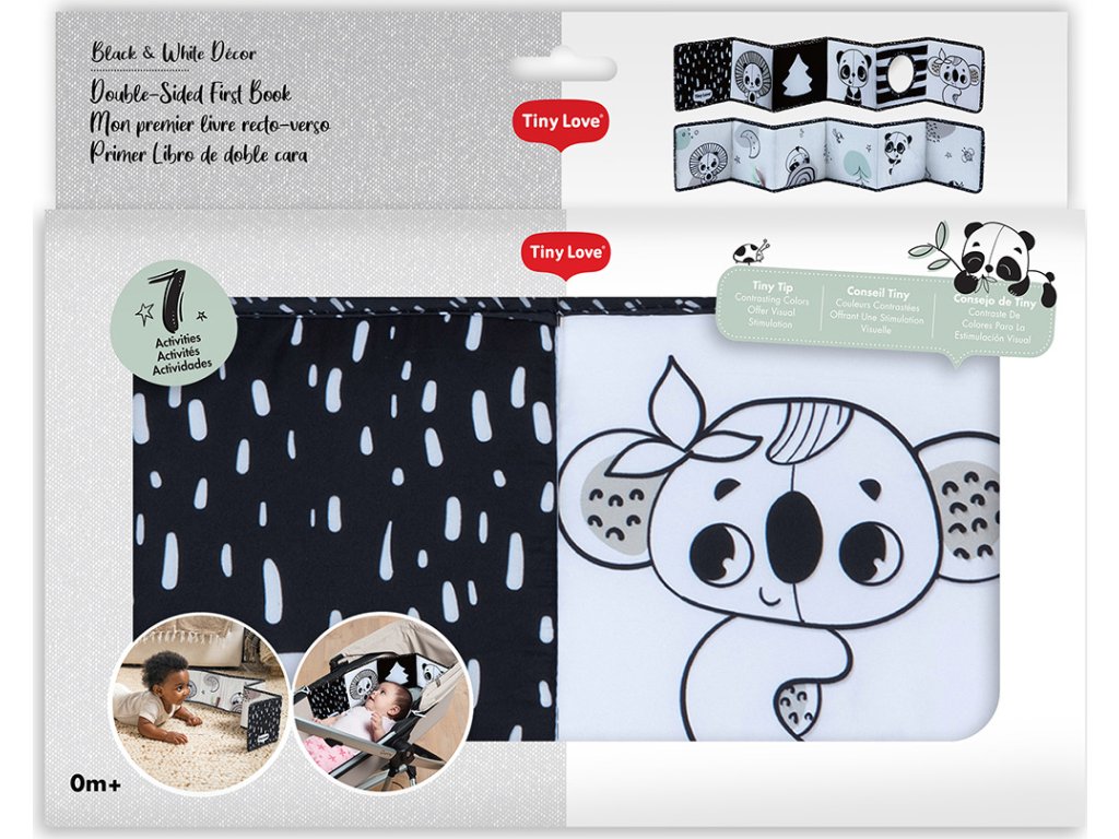 Oboustranná textilní knížka pro nejmenší Tiny Love je určena do kočárku, postýlky i na hrací deku.