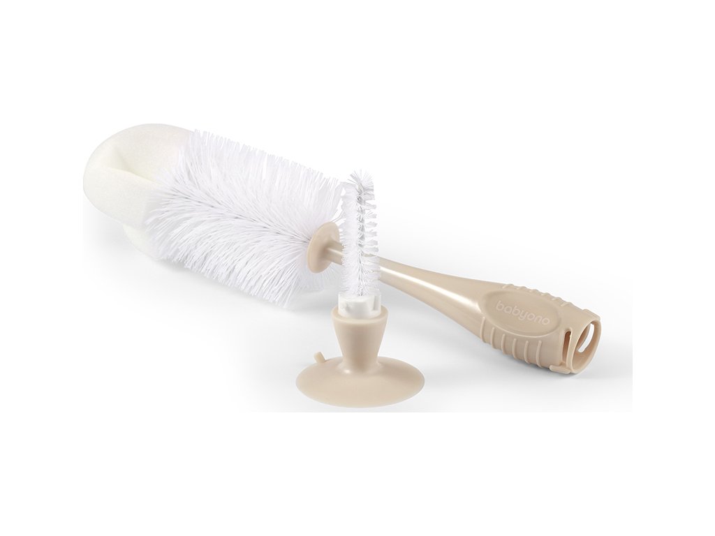 BABYONO BABYONO Kartáč na lahve a savičky s přísavkou Beige