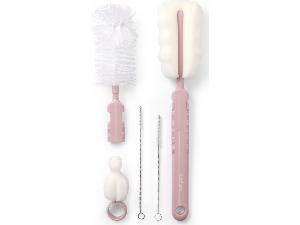 BABYONO BABYONO Kartáčky na kojenecké lahve a savičky s odnímatelnou rukojetí Pink