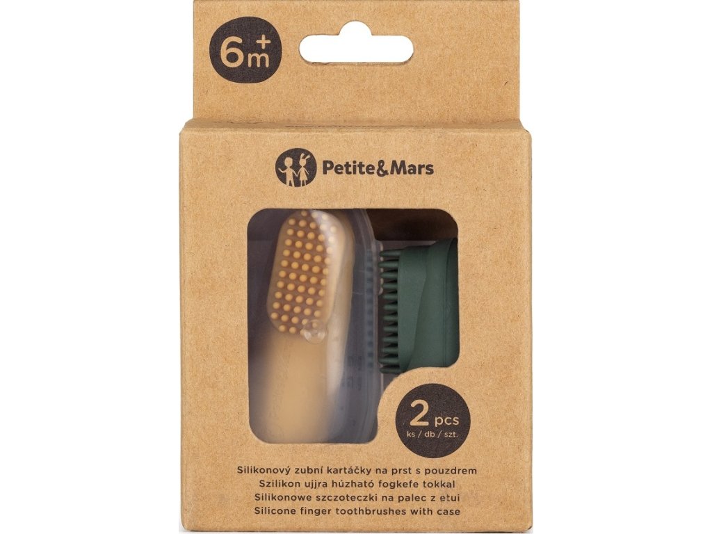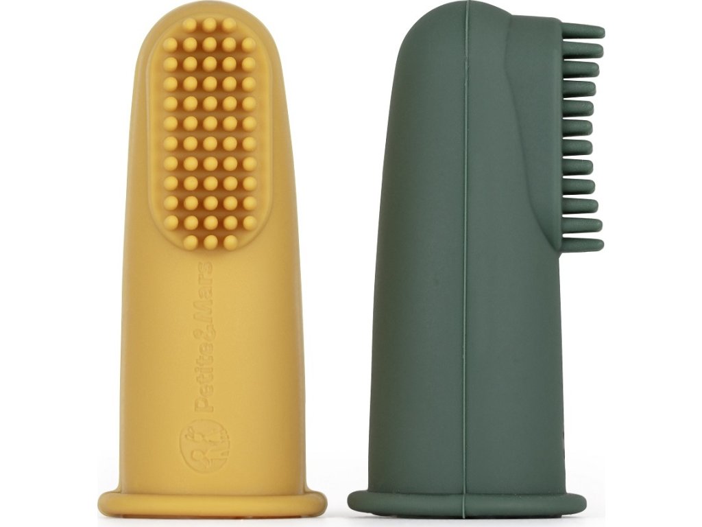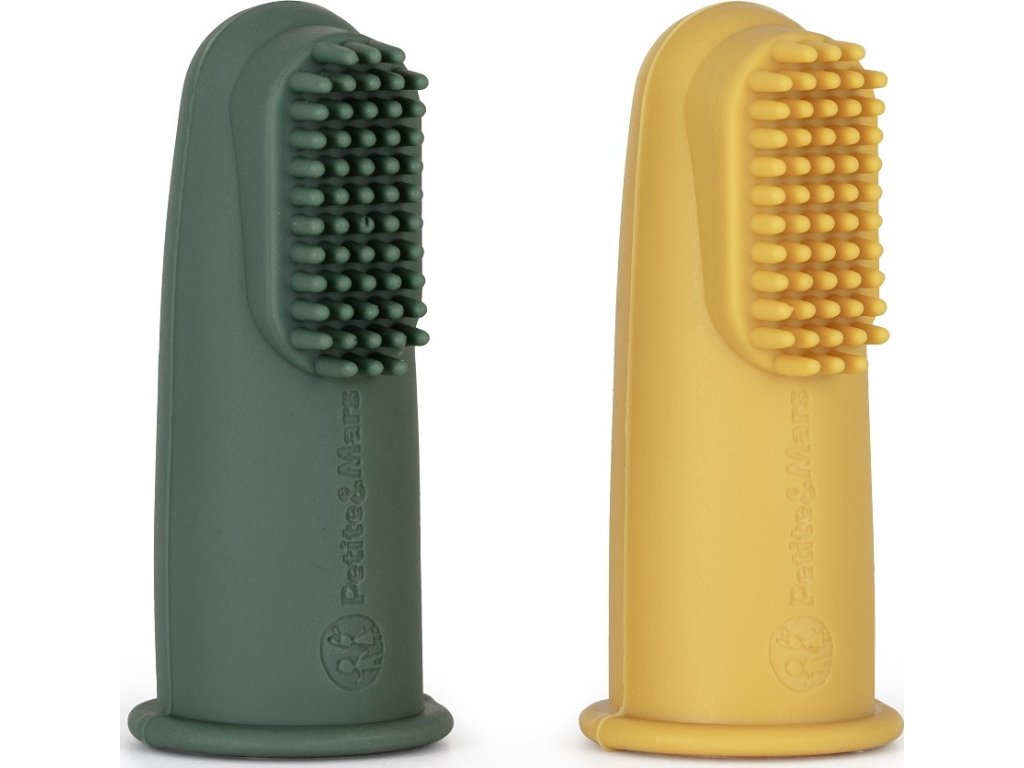 PETITEMARS PETITE&MARS Sada silikonových zubních kartáčků na prst Ochre&Green 2 ks 0m+