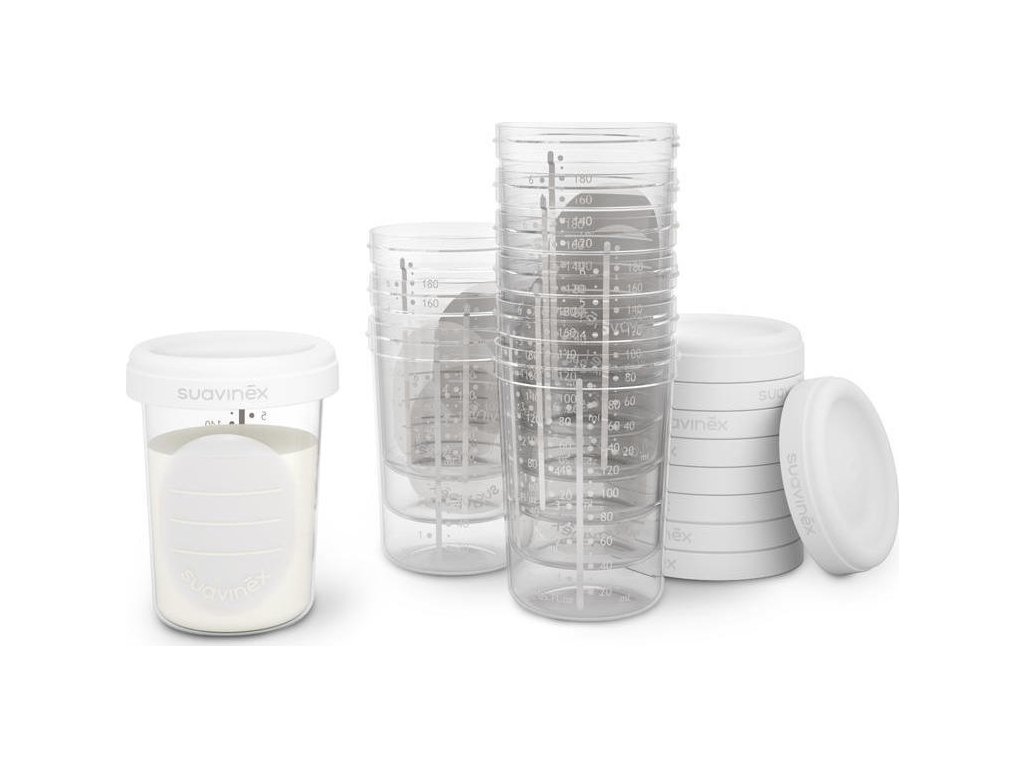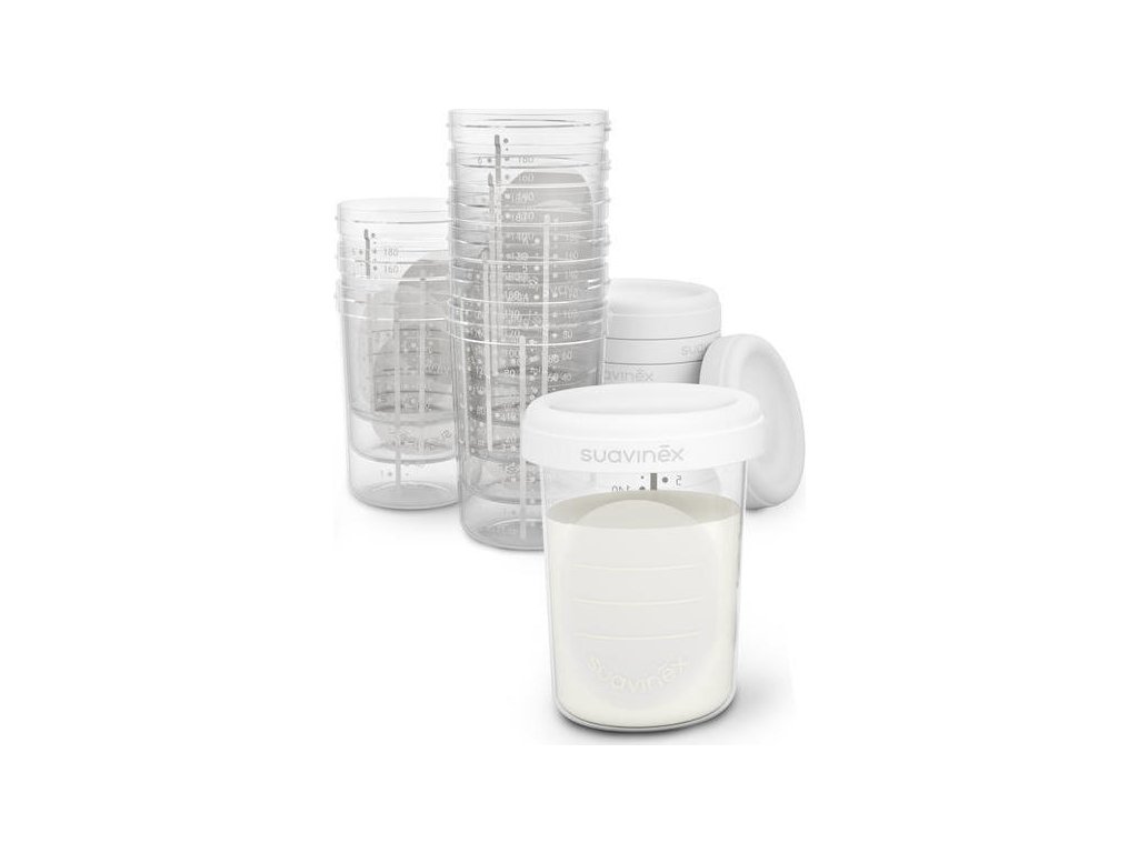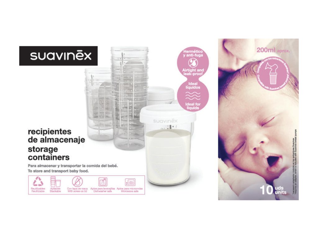 SUAVINEX | Skladovací pohárky 200 ml - 10 ks Skladovací pohárky Suavinex umožňují ukládat a přepravovat pokrm i tekutiny pro vaše dítě. Díky hermetickému těsnění jsou ideální jak pro pevné pokrmy, tak i pro tekutiny, jako je čerstvě odstříkané mateřské mléko, pyré apod. Jedná se o nejčistší a nejvíce hygienický způsob, jak pro vaše dítko uskladnit pokrmy.