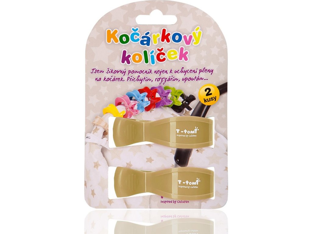 Kočárkové kolíčky T-tomi, vyrobené z kvalitního a odolného plastu jsou skvělým způsobem jak uchytit plenu či osušku na Váš kočárek či autosedačku, která tak chrání Vaše miminko před sluncem a jinými nepříznivými vlivy. Tyto kočárkové kolíčky mají mnohostranné využití, např. k uchycení dudlíků, hraček a dalších drobných předmětů ke kočárku čí autosedačce.