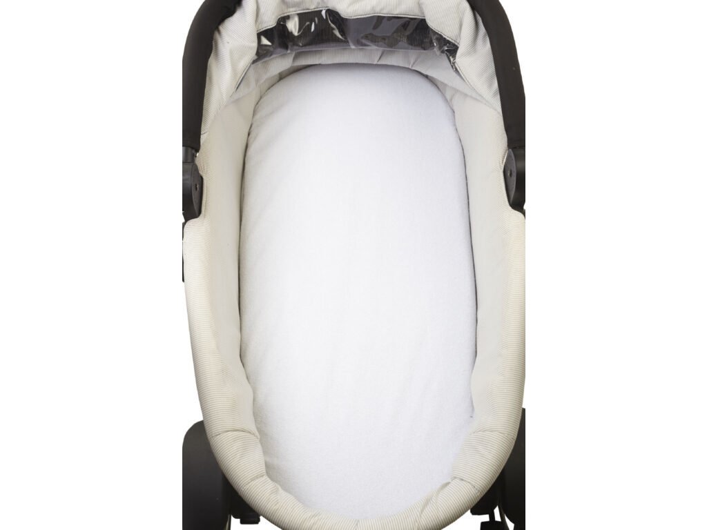 Prostěradlo do kočárku Z froté materiálu s nepropustnou, ale prodyšnou polyuretanovou vrstvou. Zabrání prosáknutí a díky prodyšnosti ochrání miminko před zapařením. S pružnou gumou pro rychlou manipulaci. Materiál: 80% Bavlna, 20% Polyester, PU membrána •nepropustné •prodyšné •pratelné (vyvářecí 95°C) •vrchní vrstva - bavlněné froté •pružné