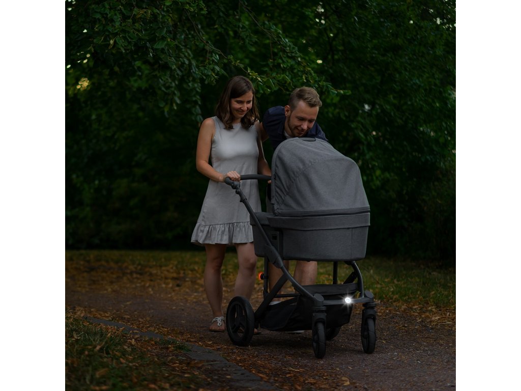 - pružný upínací úchyt umožňuje použití na kočárku nebo chůzi na kole