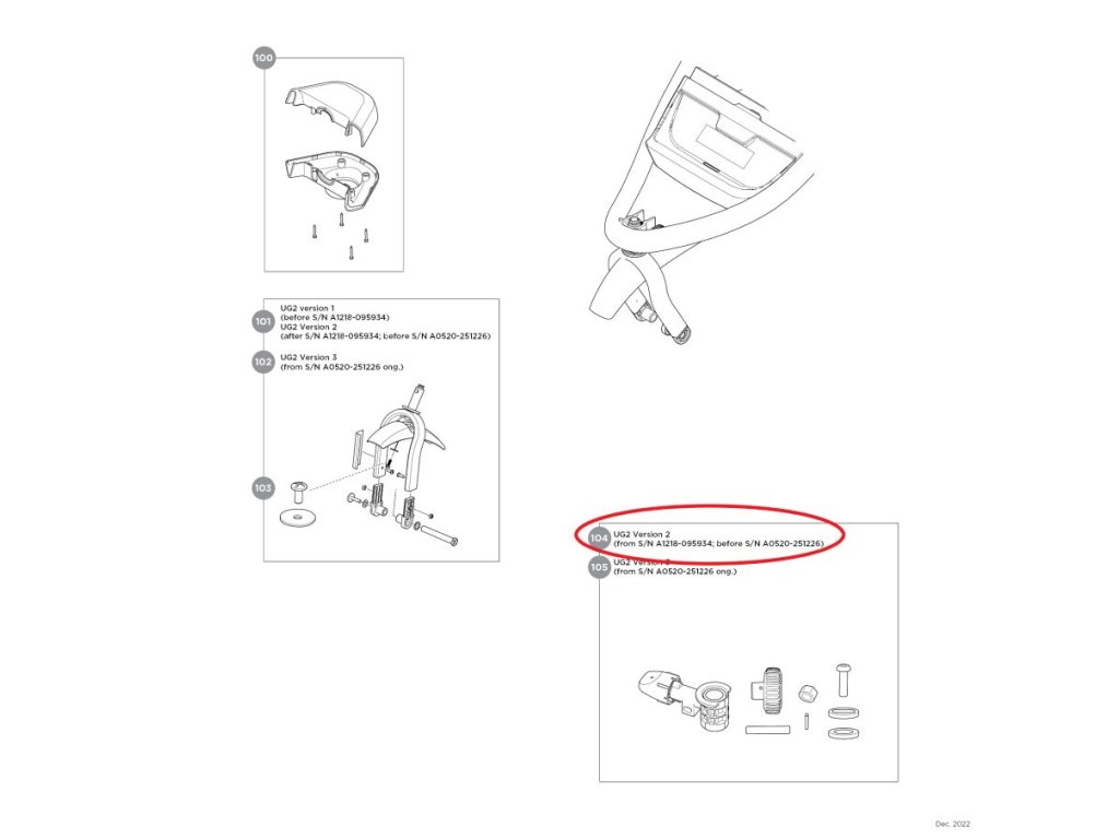 Náhradní díl ke kočárku Thule Urban Glide ( Uložení předního kolečka, aretace - model 2018 - 2020 ) jedná se o náhradní díl pro starší generaci kočárku s modrými prvky.