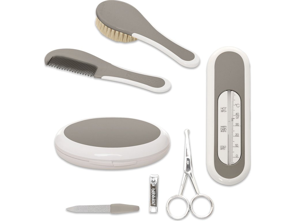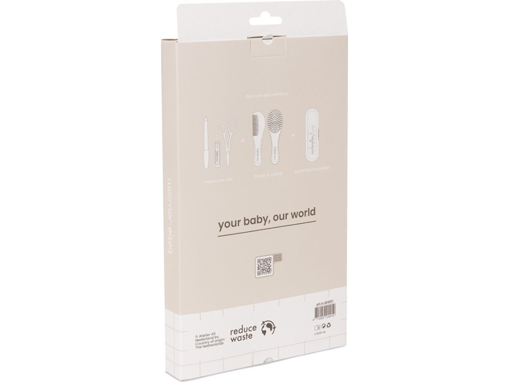 Roztomilá čtyřdílná dárková sada potěší novopečené rodiče hned několikrát. Poprvé, když ji obdrží a pak pokaždé, když ji budou používat. Není to jenom krásný dárek, ale také velice praktická, krásně zabalená sada. Obsahuje koupací teploměr, manikůru, hřeben a kartáč.