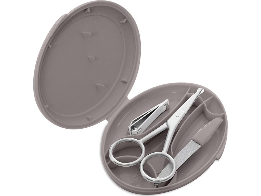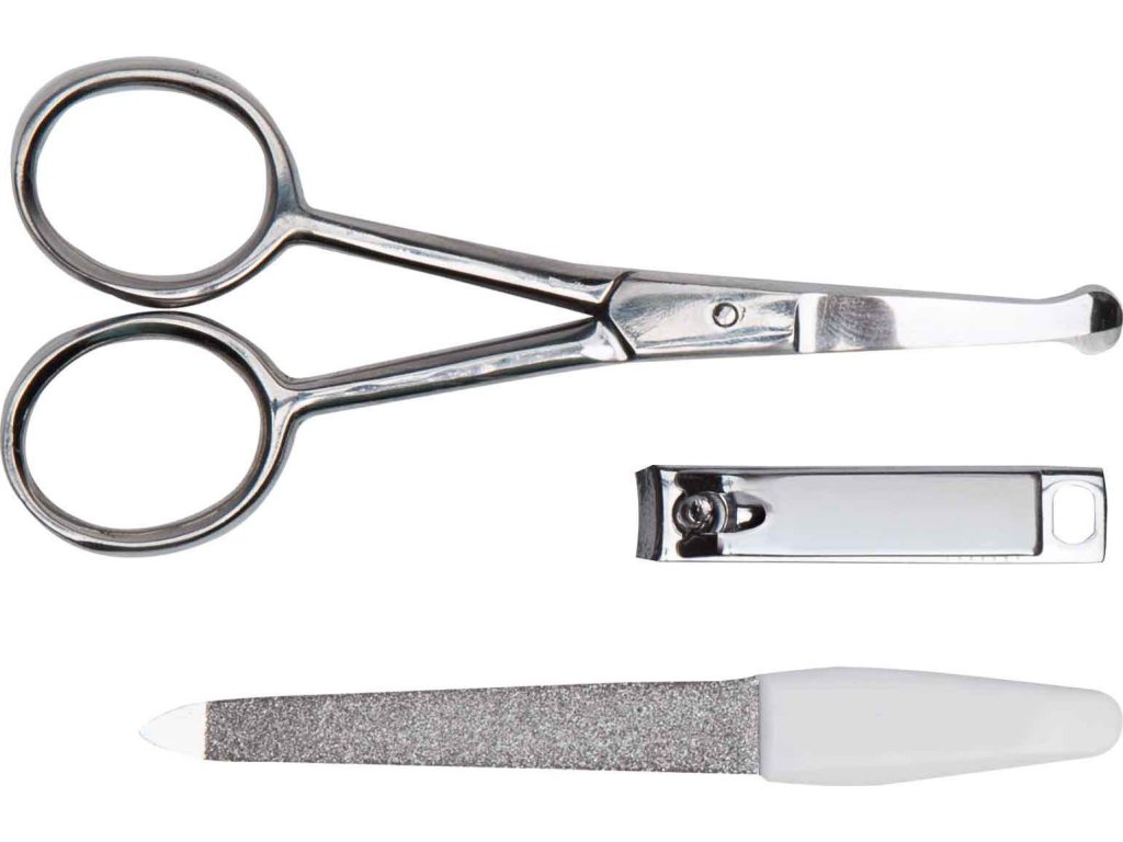 Manikůra obsahuje nůžky se zakulacenými konci, pilníček na nehty a také kleštičky na nehty. Vše je vyrobeno z nerezavějící ušlechtilé oceli. Krabička chrání před prachem a pomáhá udržovat manikuru v čistotě. Ale i přesto před každým použitím jednotlivé nástroje pečlivě očistěte a u novorozenců i desinfikujte roztokem lihu.