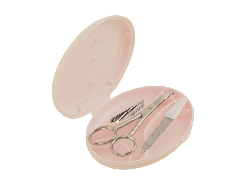 Manikůra obsahuje nůžky se zakulacenými konci, pilníček na nehty a také kleštičky na nehty. Vše je vyrobeno z nerezavějící ušlechtilé oceli. Krabička chrání před prachem a pomáhá udržovat manikuru v čistotě. Ale i přesto před každým použitím jednotlivé nástroje pečlivě očistěte a u novorozenců i desinfikujte roztokem lihu.