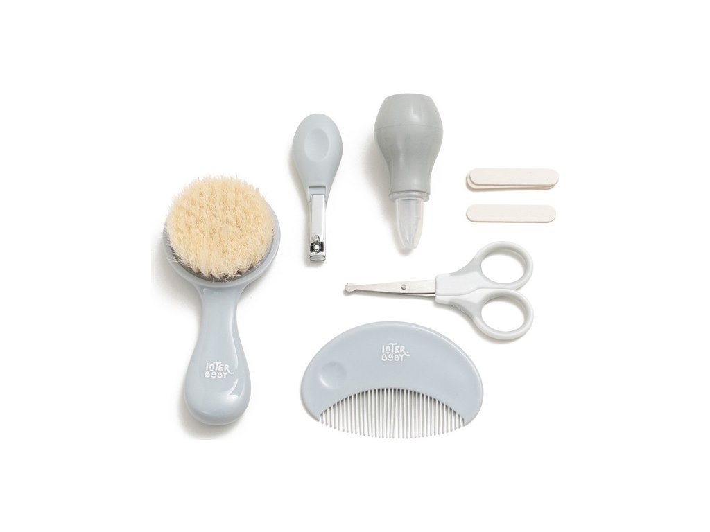 Sada obsahuje kartáč s přírodními štětinami, hřeben se zaoblenými hroty, nůžky se zaoblenou špičkou, nosní odsávačku s pružnou a měkkou špičkou, kleštičky a pilníček na nehty. Univerzální souprava je ideální na cesty i pro domácí použití.