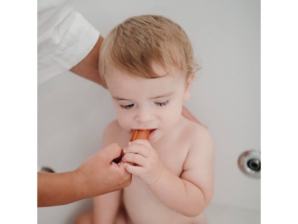 Mushie silikonový zubní kartáček na prst 2 ks