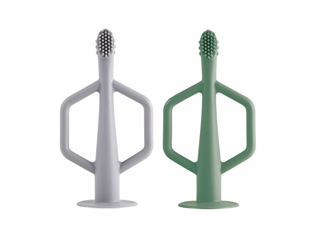 Tiny Twinkle Silikonový zubní kartáček, 2 ks - Olive / Grey