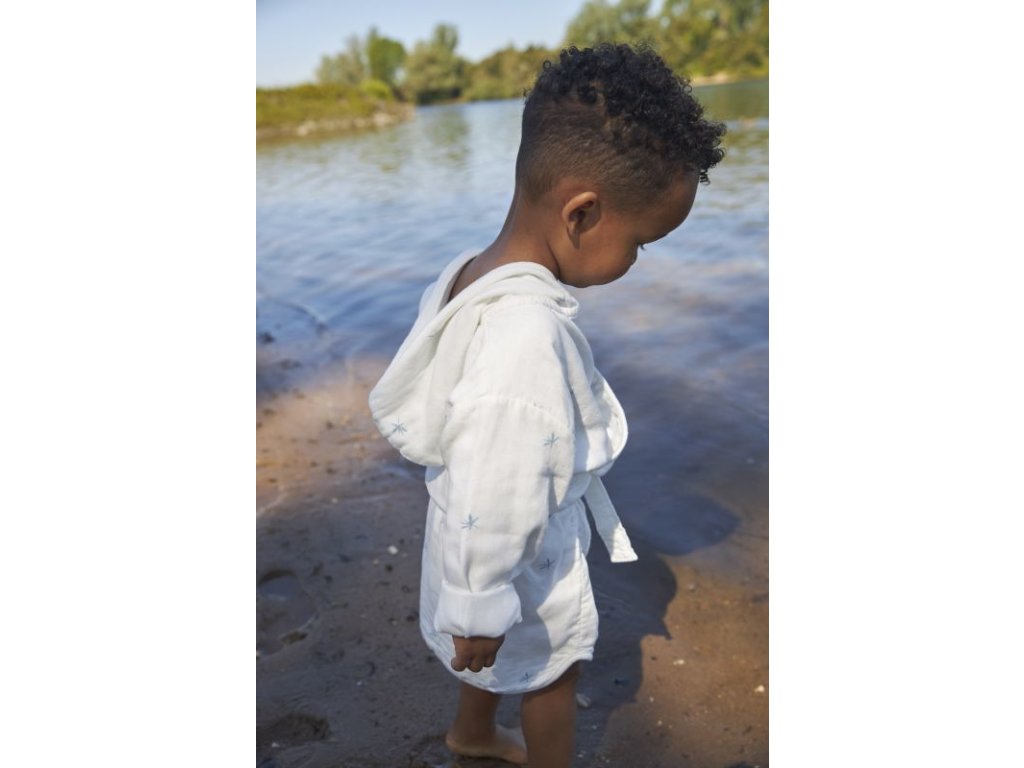 Bambus absorbuje až o 70 % více vlhkosti než bavlněné látky a je rychleschnoucí.Bambus je hypoalergenní. Má chladivý účinek a je přirozeně chráněn proti UV záření, proto je ideální pro použití v létě při plavání.V zimě je bambus teplejší než bavlna a proto rychleji zahřeje Vaše dítě po sprše nebo koupeli. Materiál: 70% bambus a 30% bavlnaVelikost: 98/104 cca 3-4 rokyPři výrobě bambusu je až o 80% menší dopad na životní prostředí než u bavlny.Materiál je v létě prodyšný a v zimě dobře izoluje.