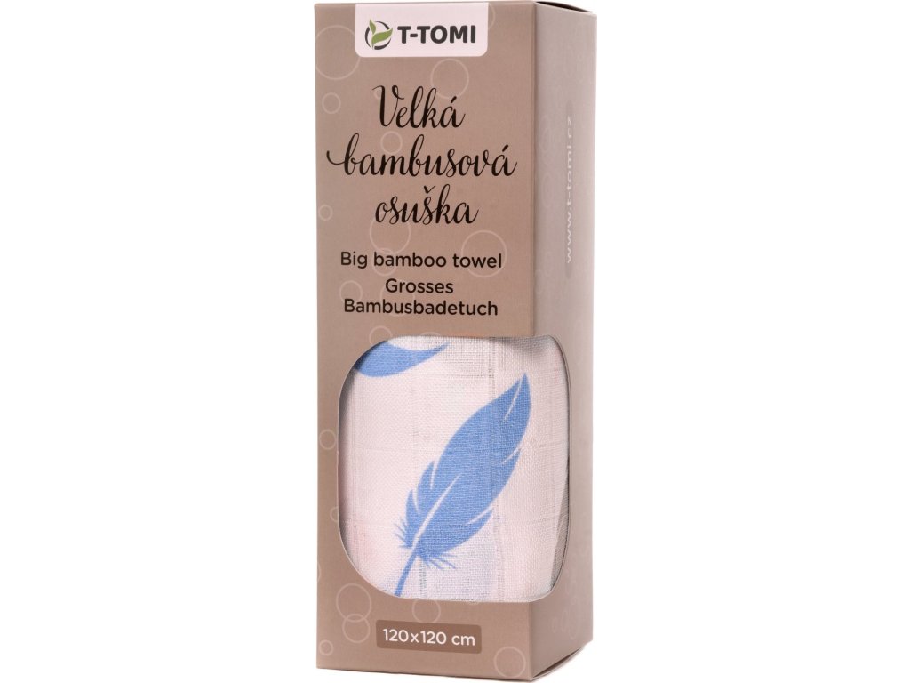 Bambusová vysokogramážní osuška T-tomi s potiskem z bambusového materiálu je vyrobena dvouvrstvou technologií dutinného tkaní. Díky tomuto zpracování je bambusová osuška mnohonásobně savější, měkčí a jemnější než klasické bavlněné osušky. Bambusová osuška T-tomi má všestranné využití. Lze ji použít nejen pro zavinutí, ale i jako osušku, podložku, prostěradlo, clonu přes kočárek a jiné.