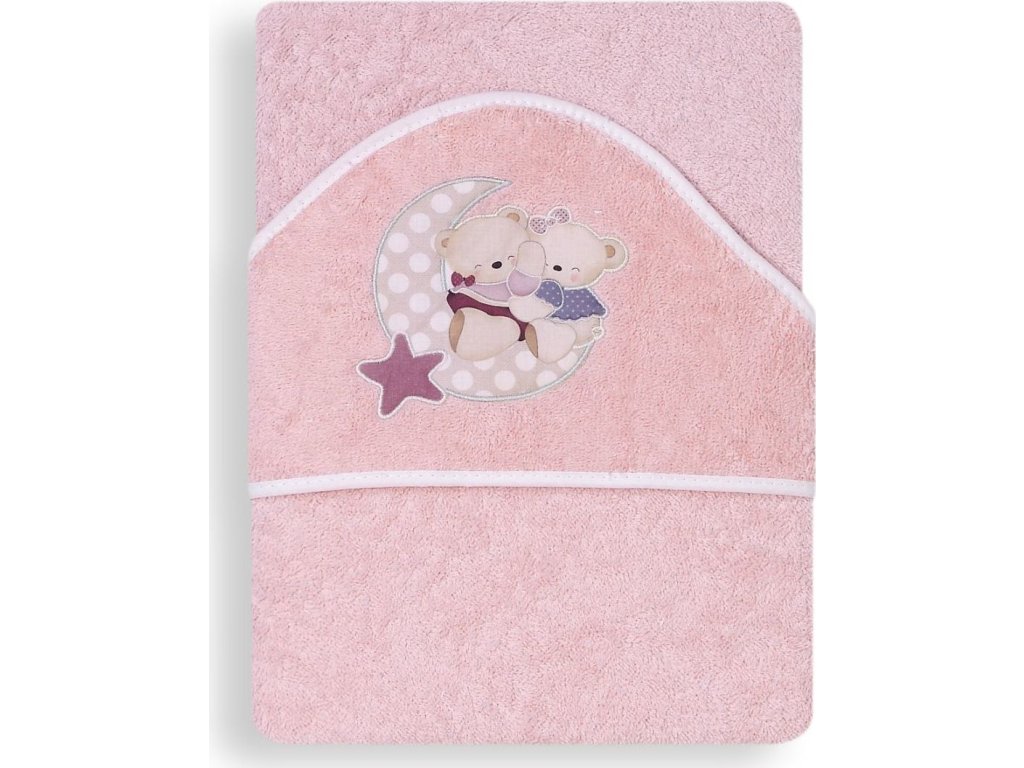 INTERBABY | Osuška froté MEDVÍDEK S MĚSÍČKEM - RŮŽOVÁ Osuška z čisté bavlny s kapucí - Vaše miminko po koupání osuší a zahřeje.