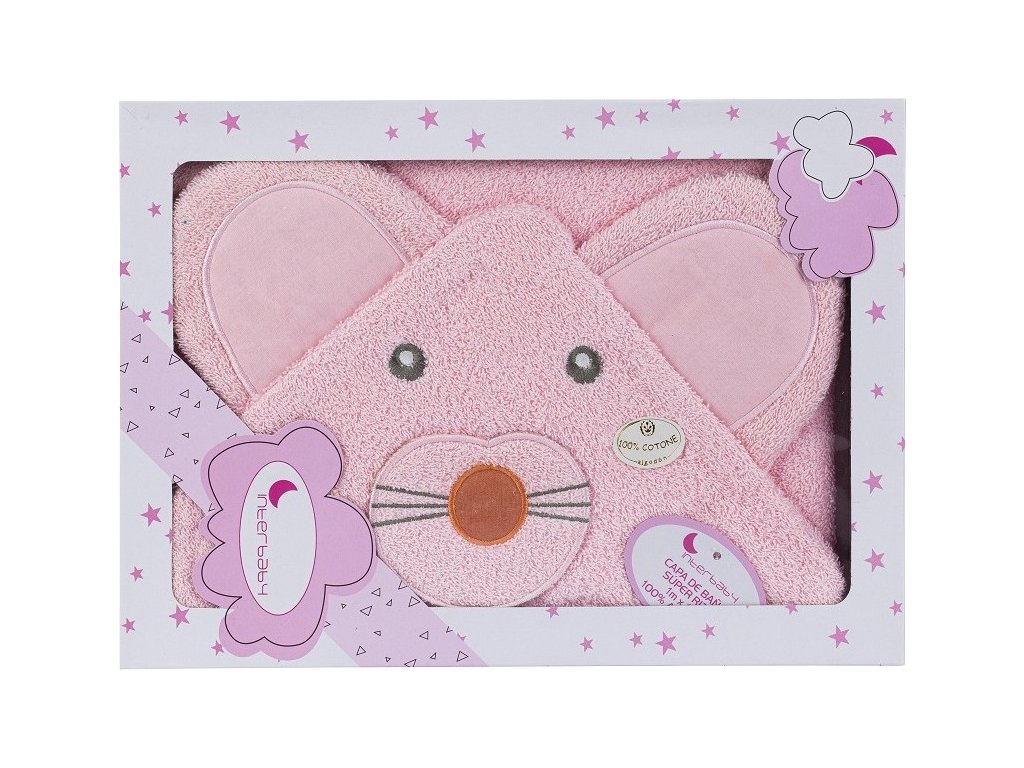 INTERBABY | OSUŠKA froté 100x100 MYŠKA - růžová