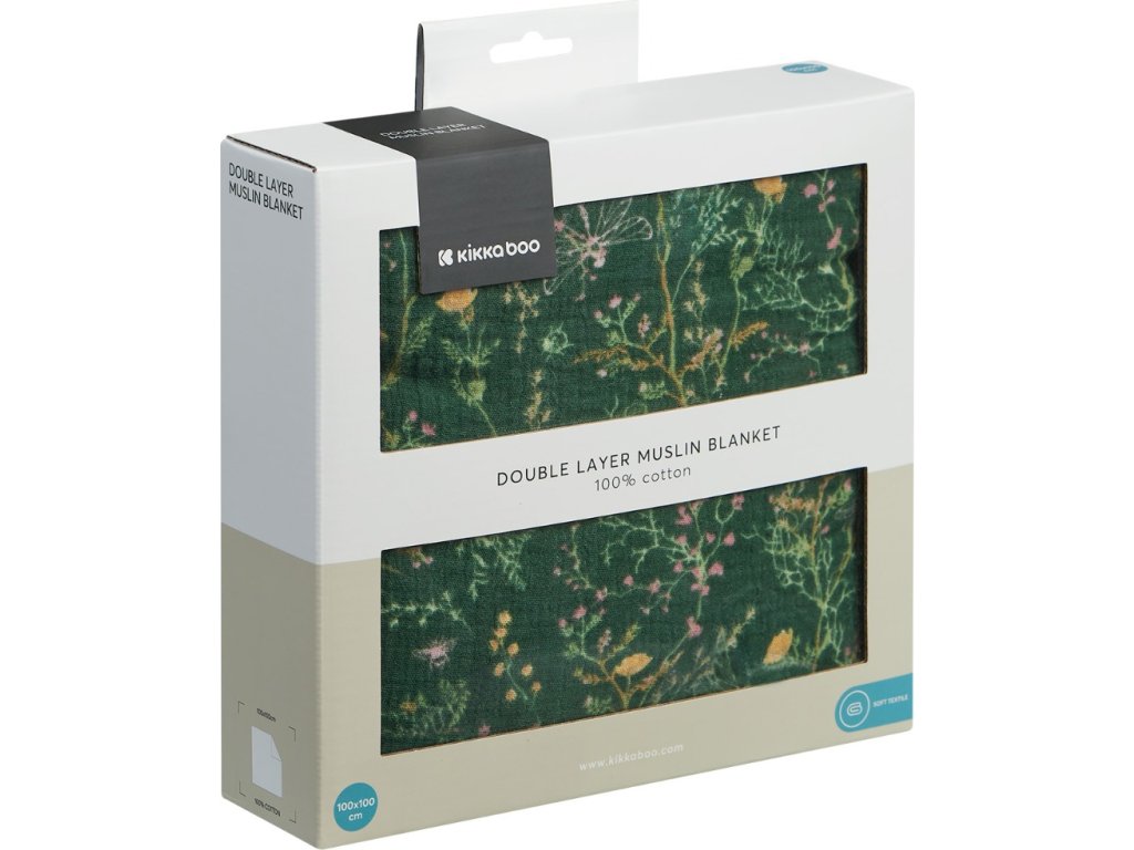 KikkaBoo Plena zavinovací 2-vrstvá 100x100 cm Secret Garden Green