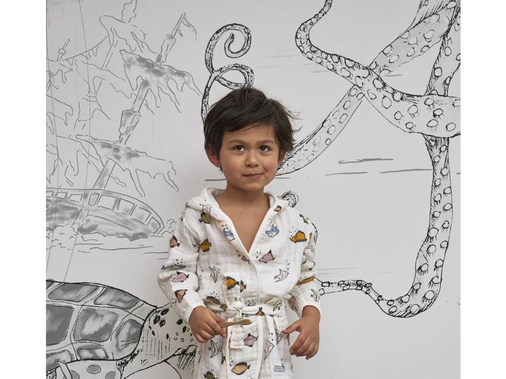 Moderní a stylový župánek je vyroben ze 100% bavlny. Příjemný na tělo, ideální po vykoupání, k bazénu nebo na pláž.