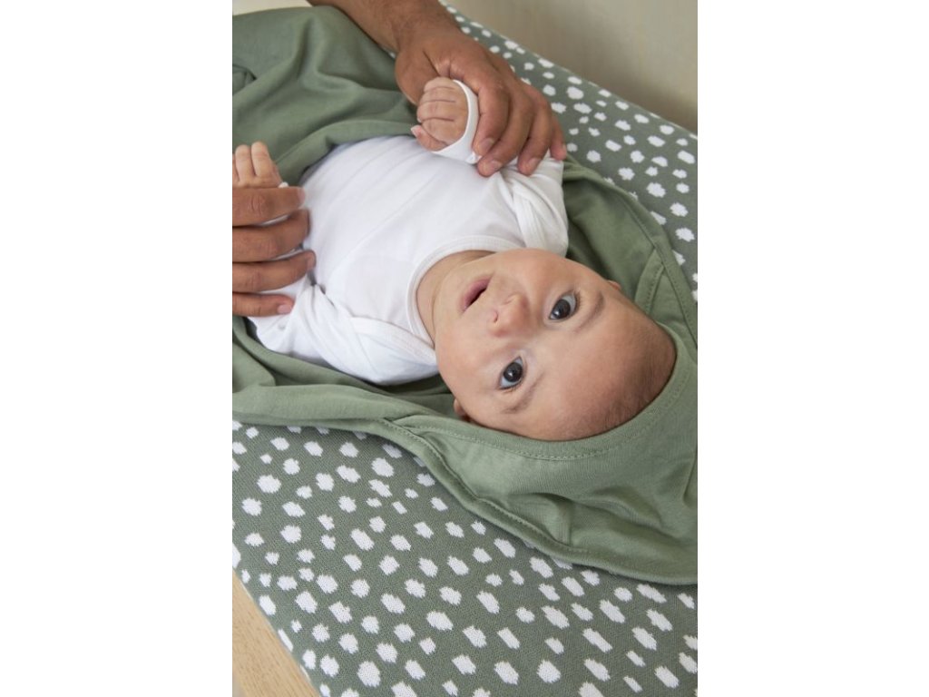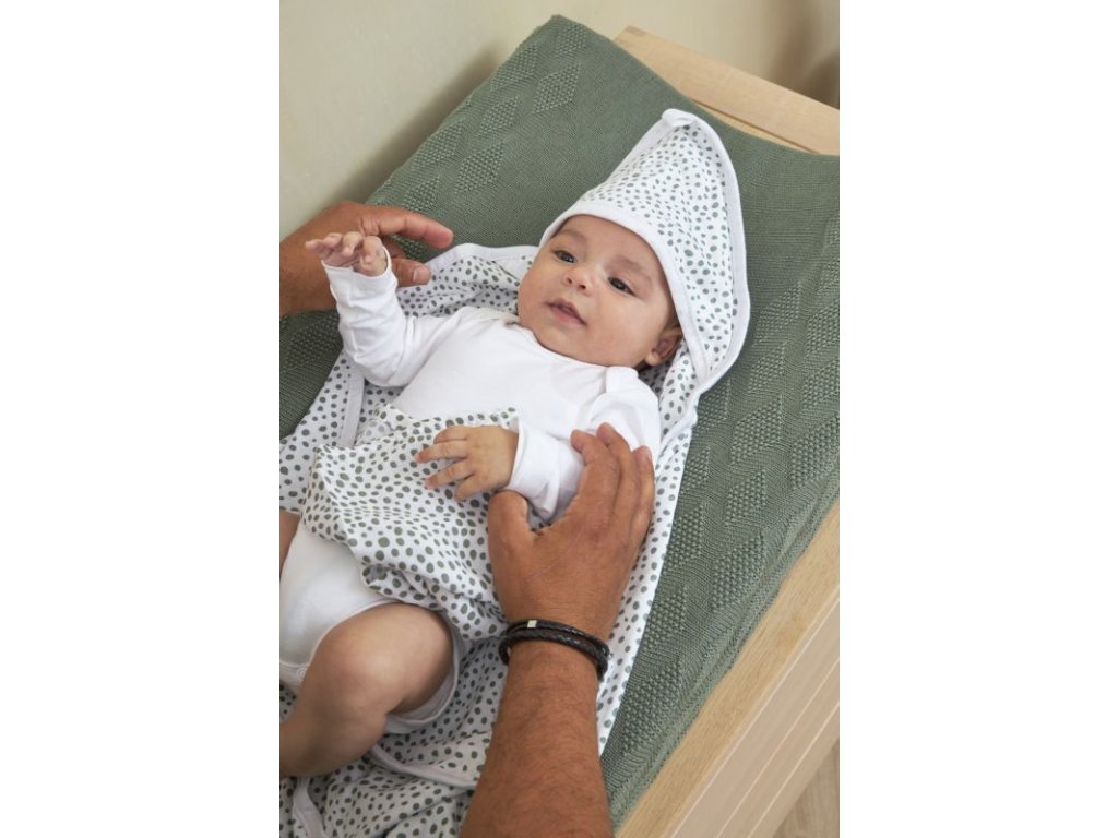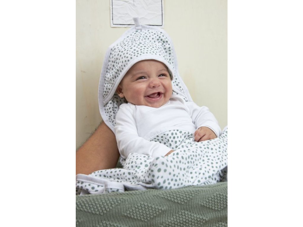 Pohodlná a praktická osuška je vyrobena z dvouvrstvé 100% bavlny. Je krásně měkká, jemná a savá. Díky kapuci můžete dítě zabalit od hlavy až k patě.