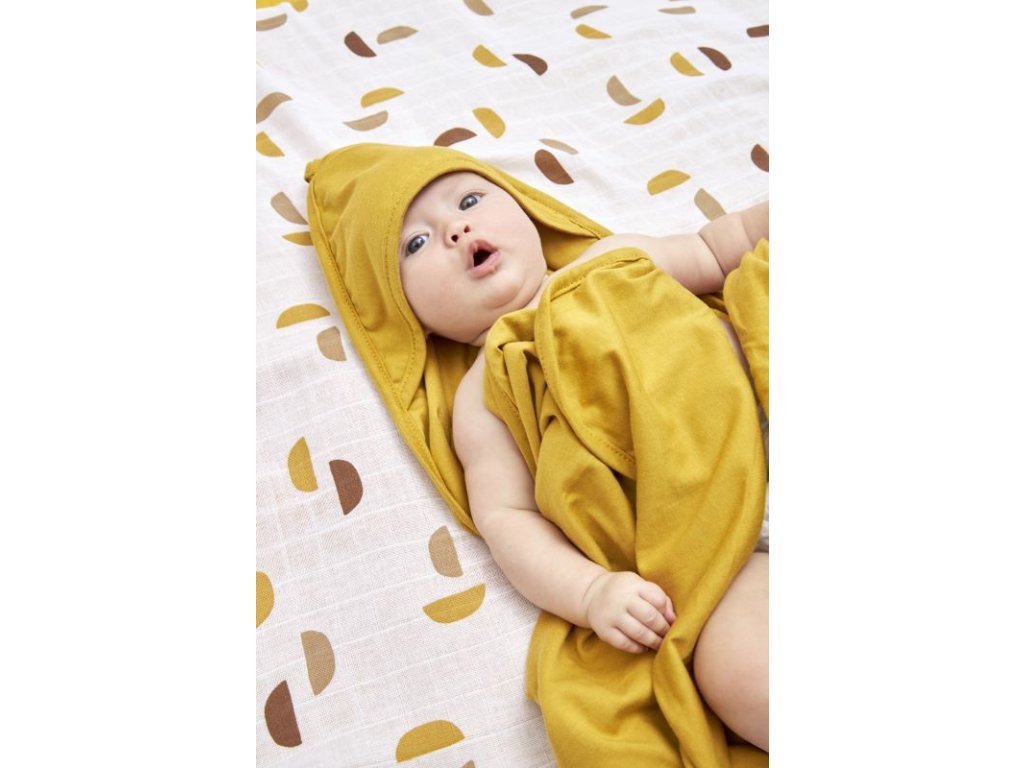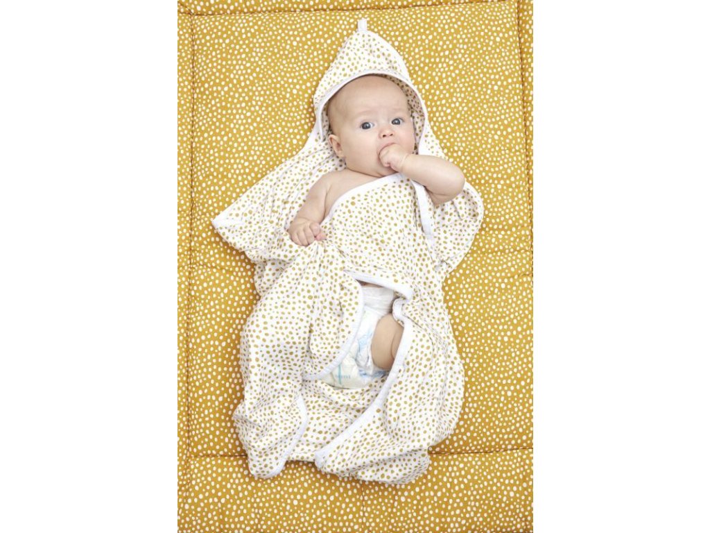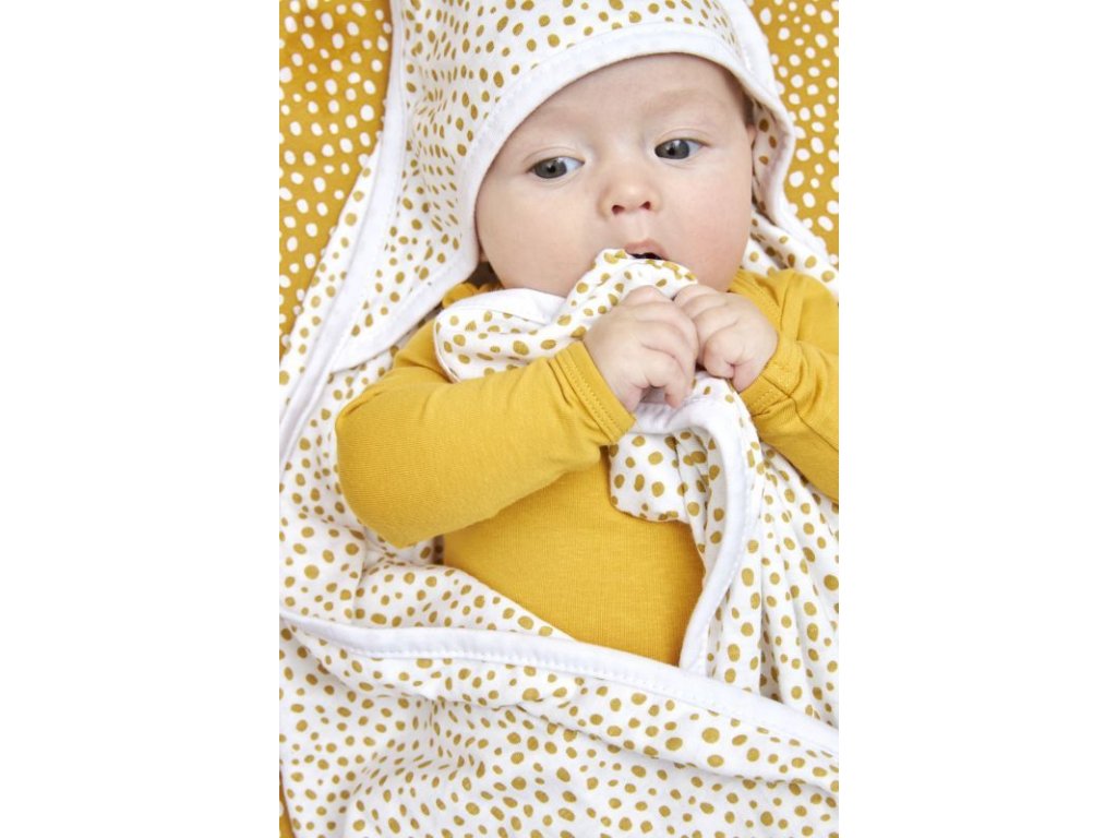 Pohodlná a praktická osuška je vyrobena z dvouvrstvé 100% bavlny. Je krásně měkká, jemná a savá. Díky kapuci můžete dítě zabalit od hlavy až k patě.
