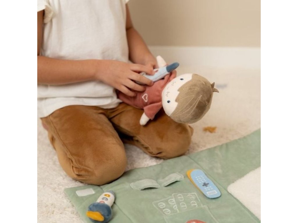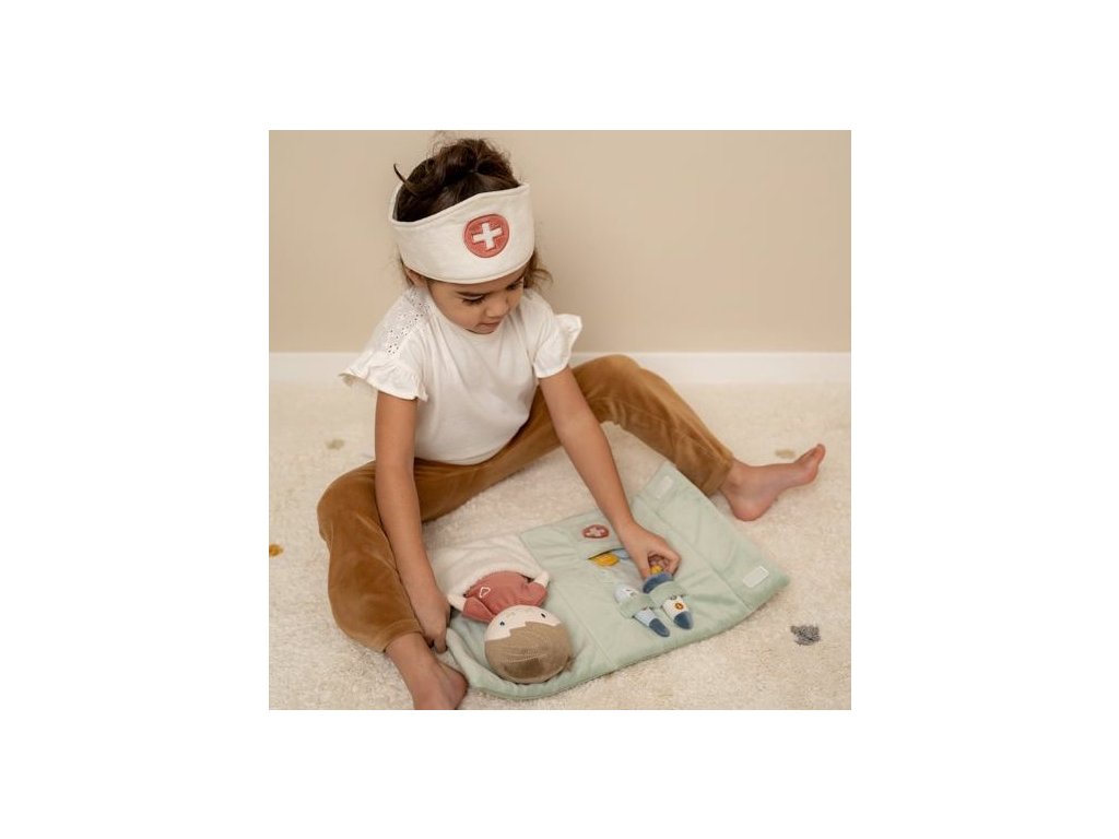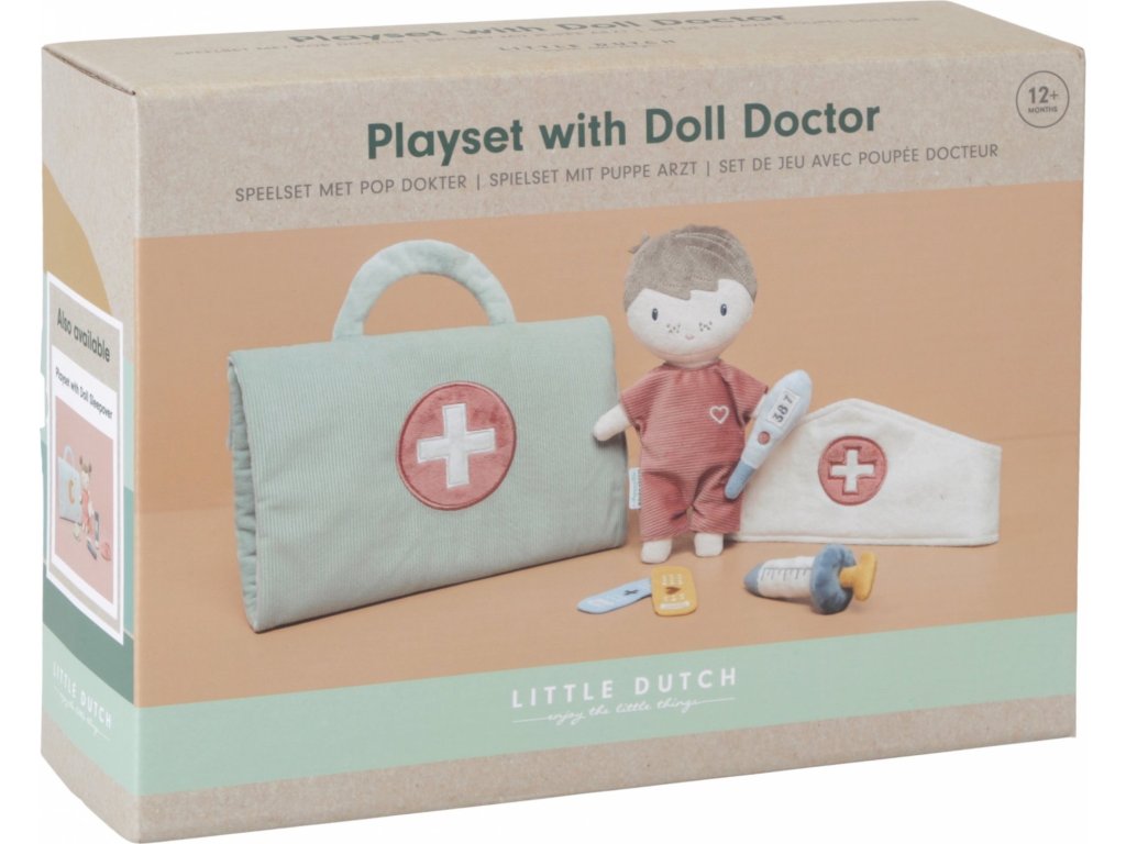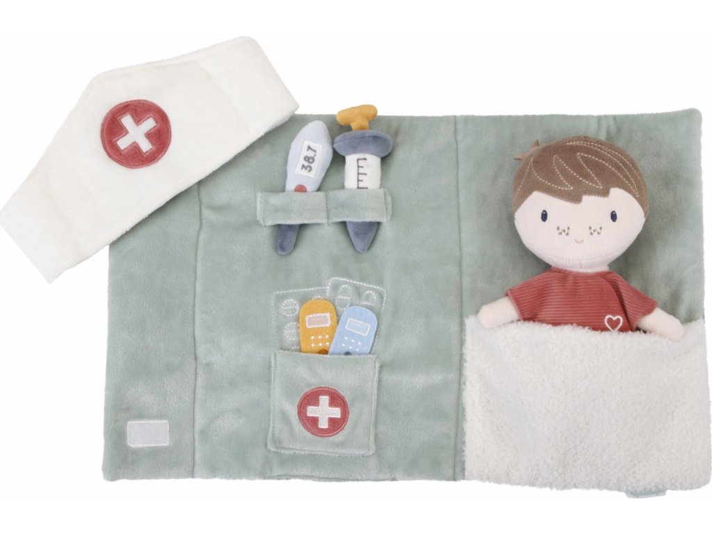 Originální sada s panenkou Jimem a lékařskými doplňky v krásném provedení z jemného plyšového materiálu. Jim se necítí dobře a bude potřebovat vyšetřit a uložit do postýlky. Váš malý lékař nebo lékařka si nasadí čepec a s pomocí teploměru zkontroluje Jimovi teplotu. Pokud bude potřeba zahájit léčbu, má k dispozci injekční stříkačku i náplasti.