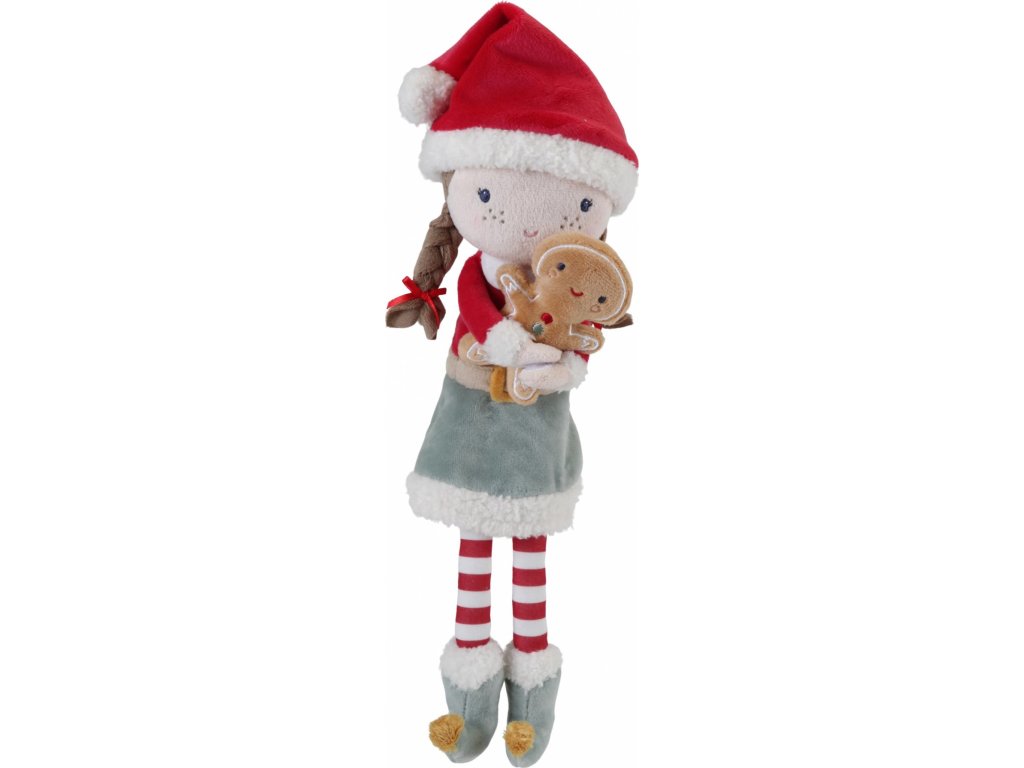 Něžná plyšová panenka Rosa ve speciálním vánočním oblečení s plyšovou postavičkou ve tvaru perníčku v ruce bude krásným vánočním dárkem pro vaše dítě. Panenka z měkkého jemného materiálu je ideální jako první panenka pro vaše dítě, je vhodná na hraní i mazlení a bude se s ní i krásně usínat!