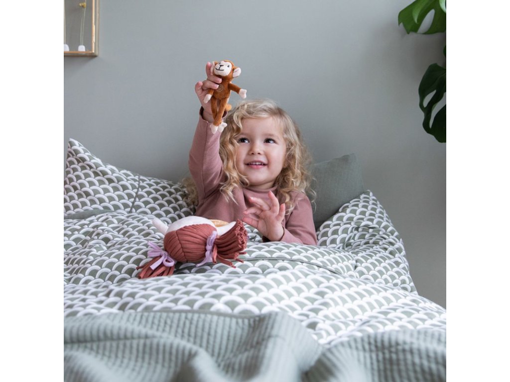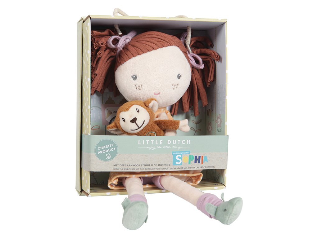 Něžná plyšová panenka Sofie z měkkého jemného materiálu je ideální jako první panenka pro vaše dítě. Panenka drží v ruce malou plyšovou opičku, připevněnou suchým zipem. Panenka je vhodná na hraní i mazlení a bude se s ní i krásně usínat!