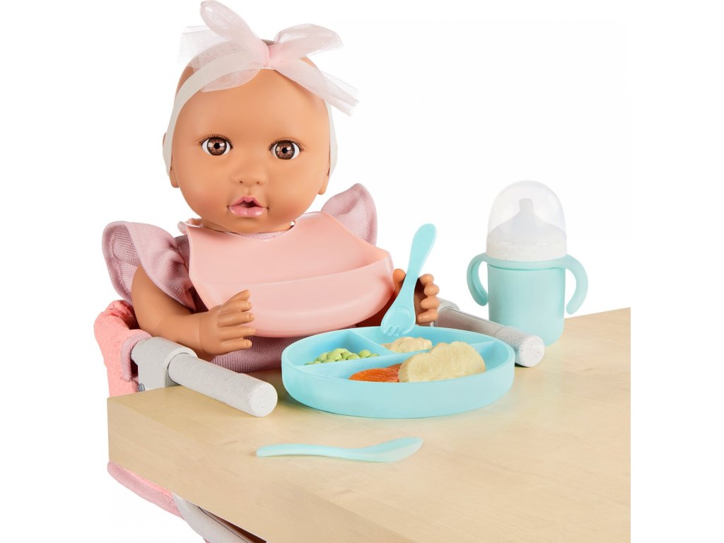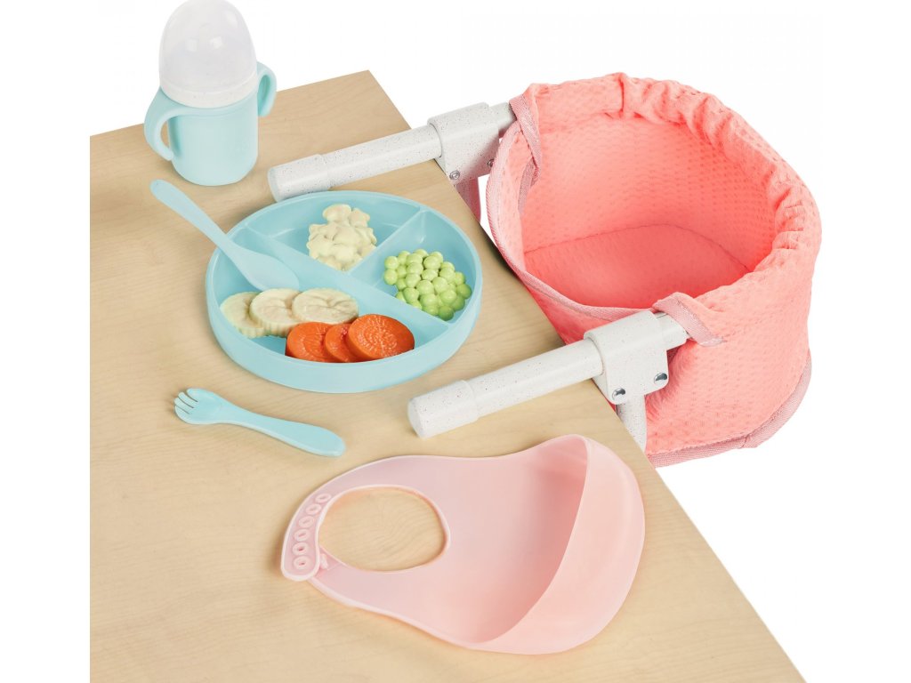 Dopřejte panence vašeho dítěte místo u stolu s praktickou jídelní židličkou LullaBaby, kterou snadno připevníte k desce stolu! Židlička je navržena tak, aby pasovala na většinu stolů o tloušťce cca 2,5 cm – upevnění zvládnou i děti. Hraní s panenkou a její krmení pomáhá rozvíjet empatii a jemnou motoriku dítěte.