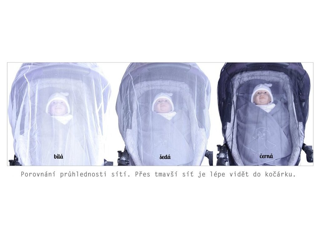 Náš tip! Přes černou síť je mnohem lépe vidět na dítě do kočárku.Složení materiálu: 100% polyester Praktické a jednoduché ošetřování Je možno prát na 30°C v automatické pračce pracími prostředky šetrnými k barvám.Prát samostatně, nebo v ochranném obalu, aby nedošlo k poškození síťoviny od pevných součástí