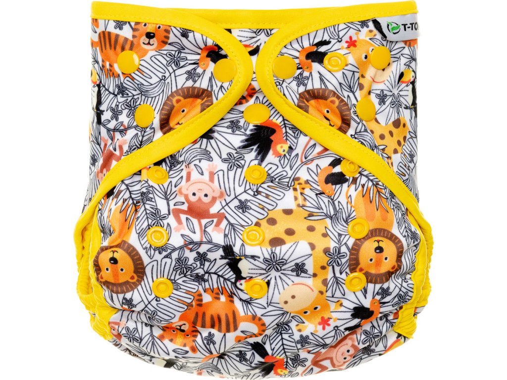 Svrchní kalhotky T-TOMI vyrobené ze 100% polyesteru s polyuretanovým zátěrem jsou nepropustné, ale přesto prodyšné. Kalhotky jsou opatřeny patentkami pro snadnou úpravu velikosti. Jsou vhodné pro všechny typy plen jako jsou čtvercové, vícevrstvé i kalhotkové. Udržují plenku na svém místě a chrání oblečení před vlhkostí, a to i díky všitým vnitřním křidélkům.