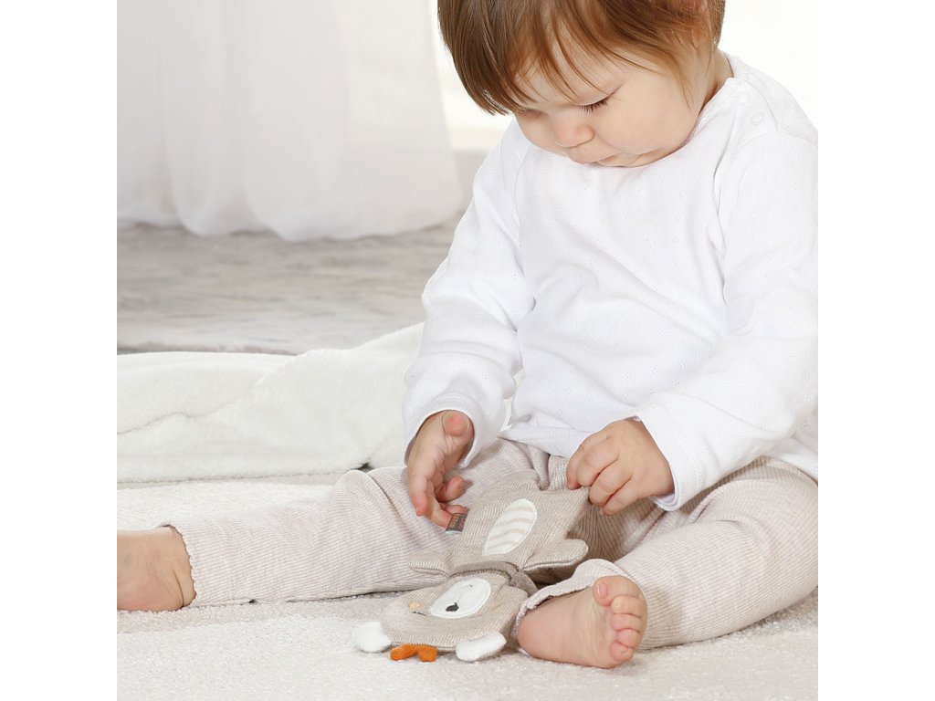 vyrobeno z organické bavlny a uvnitř se nachází šustící papír, který při mačkání