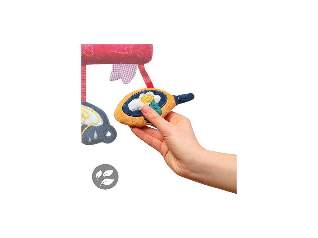 Vzdělávací hračka seznámí vaše dítě s rozmanitým světem barev, zvuků a tvarů. Tvar hračky v podobě hrazdičky umožňuje zavěšení na všechny druhy autosedaček nebo kočárků. Díky tomu může dítě doprovázet během cestování a procházek.