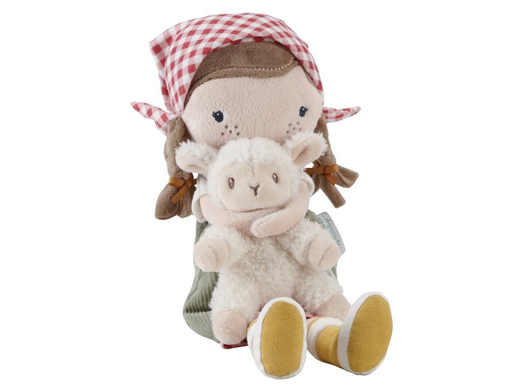 Roztomilá plyšová panenka v podobě farmářky Rosy v šatech se zástěrkou a s ovečkou v ruce. Panenka z měkkého jemného materiálu je ideální jako první panenka pro vaše dítě, je vhodná na hraní i mazlení a bude se s ní i krásně usínat!