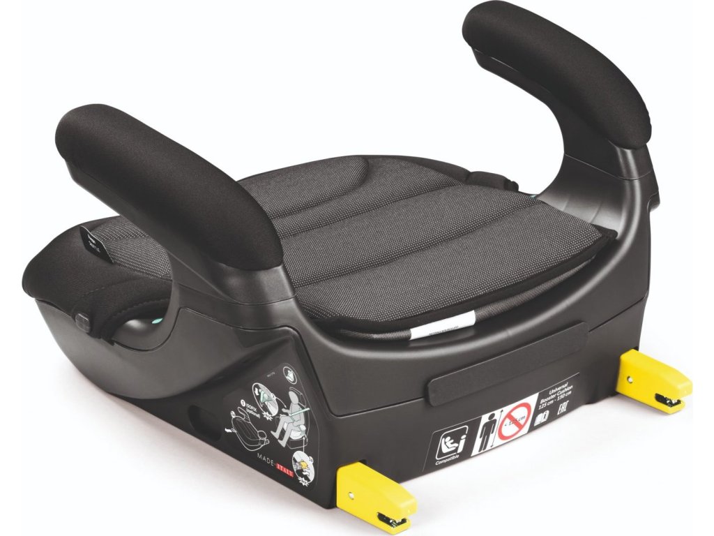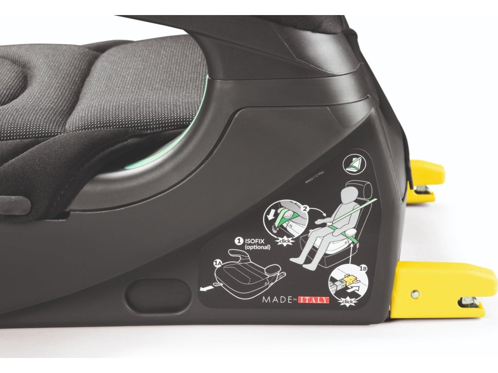 2) díky integrované i-Size Base lze společně s 3bodovým bezpečnostním pásem použít také ISOFIX konektory a připojit tak podsedák přímo ke kotevním bodům ve vozidle. Podsedák je tak vždy správně nainstalovaný a dokonale drží i v prudkých zatáčkách.