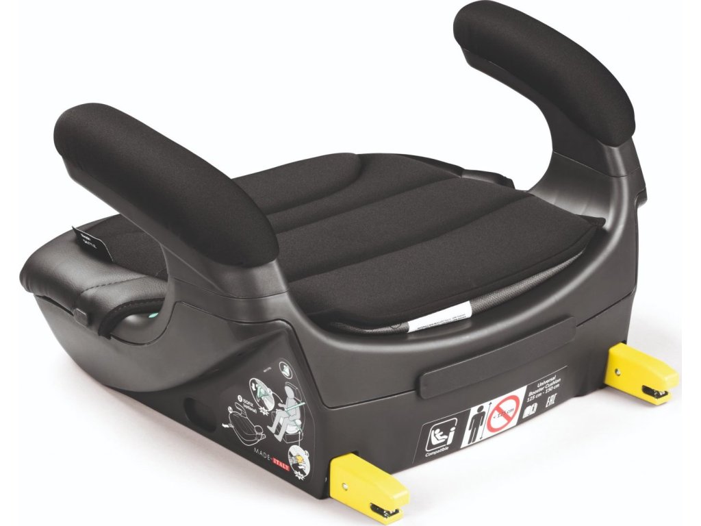 2) díky integrované i-Size Base lze společně s 3bodovým bezpečnostním pásem použít také ISOFIX konektory a připojit tak podsedák přímo ke kotevním bodům ve vozidle. Podsedák je tak vždy správně nainstalovaný a dokonale drží i v prudkých zatáčkách.