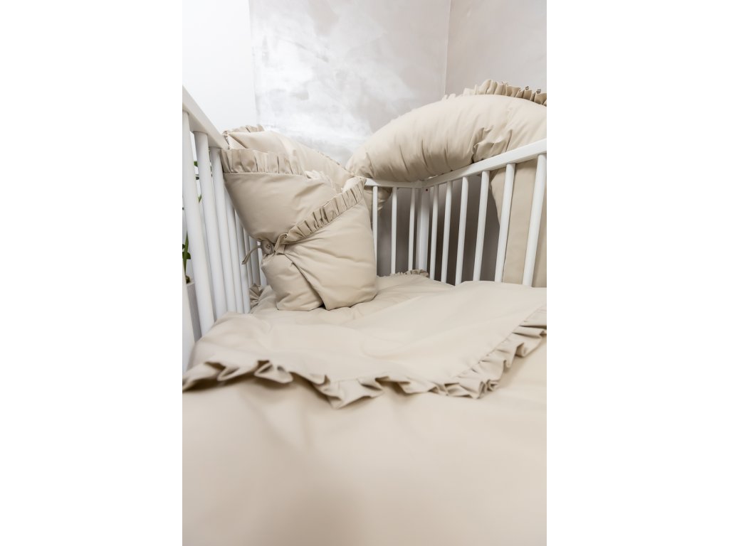 Povlečení do postýlky o rozměrech na přikrývku 100x135cm a polštářek 40x60cm. Bavlněná látka je velmi jemná a hladká. Volánky zdobí polštářek ze 3 stran a na přikrývce z jedné strany.