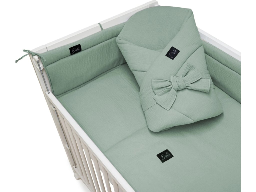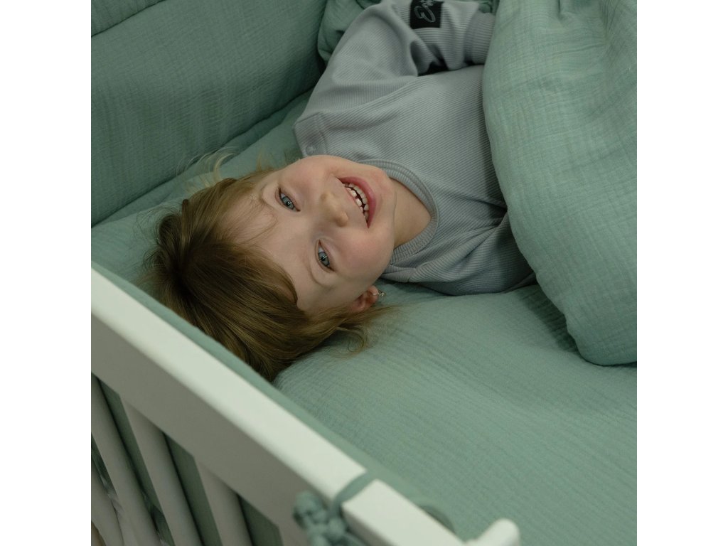 Nezaměnitelnou jemnost certifikovaného mušelínu miluje každé miminko. Dokonale sladíte postýlku s mantinelem, zavinovačkou i spacím pytlem mušelín Olive.