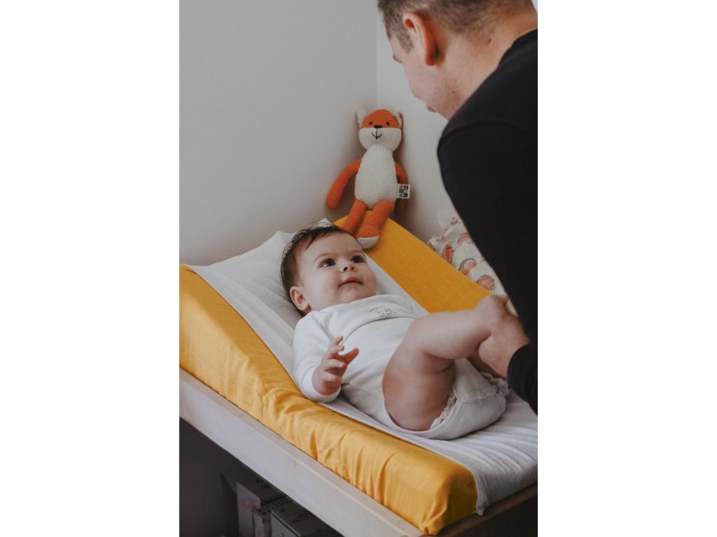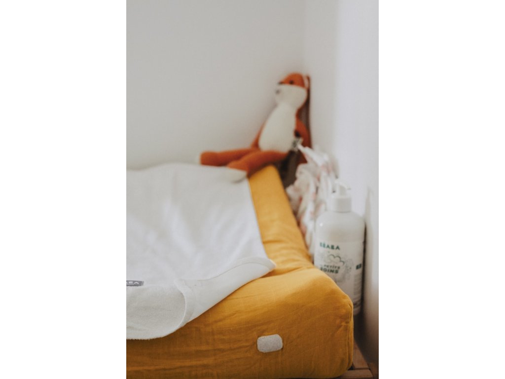 Potah na přebalovací podložku Beaba Sofalange® s odnímatelnou froté podložkou je vyroben z měkké biobavlny. Froté podložka se na potah snadno upevní s pomocí suchých zipů.
