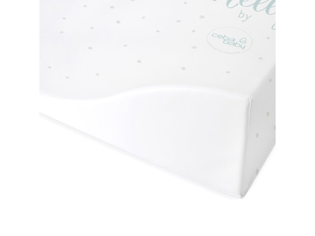 Výplň podložky je měkká a zajišťuje dítěti pohodlí během péče. Podložka je určena k položení na komodu nebo jiný stabilní povrch.