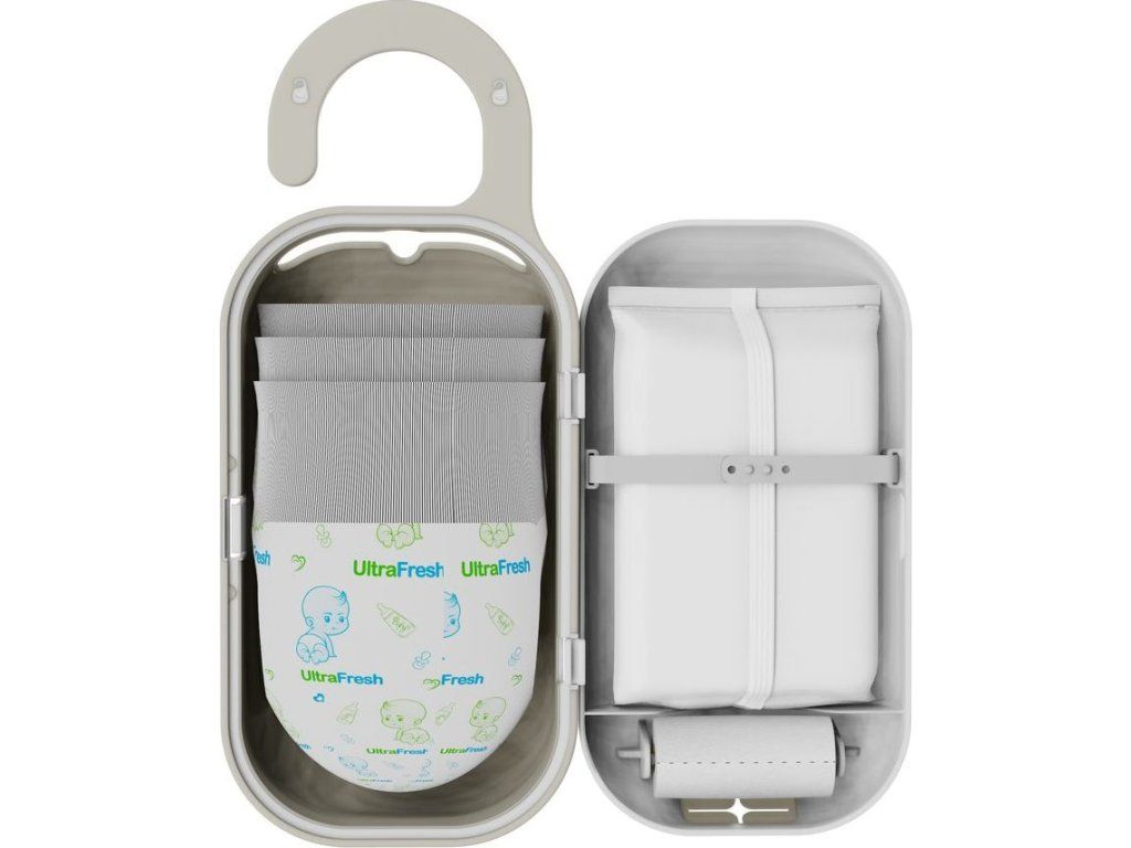 Díky promyšlenému vnitřnímu členění pojme přibližně 4–5 plen, balení vlhčených ubrousků i zásobník na jednorázové sáčky. Už žádné hledání v tašce – vše máte elegantně uložené v jednom přebalovacím boxu.