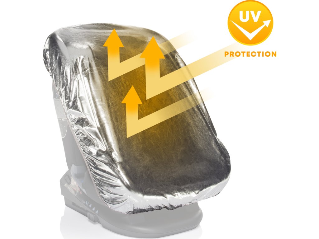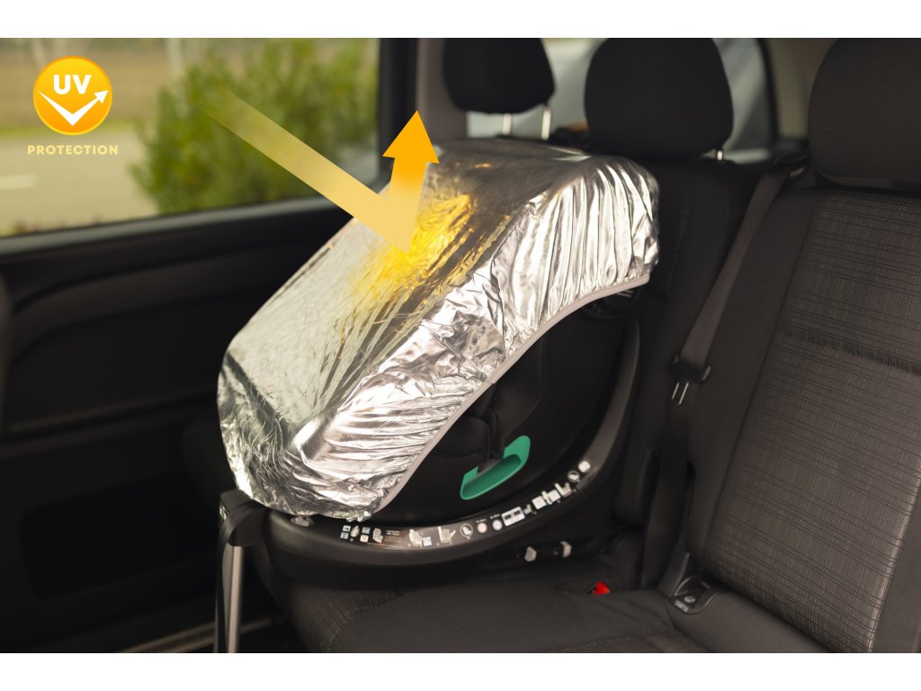 Už žádná rozpálená autosedačka, ve které bude dítěti nepříjemné sedět. Praktická ochrana odráží sluneční paprsky a udržuje autosedačku pod ní chladnou i v letních měsících. Ochrana se snadno instaluje a sedí na většinu typů autosedaček.